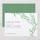 Casamento botânico moderno salve a data em puro sábio verde pastel aquarela com folhagem azul no lado esquerdo moldando seus nomes e detalhes do casamento. A parte de trás do convite apresenta uma cor verde coordenada. Este item faz parte de uma coleção verde etérea, visite nossa loja. Podemos alterar cores, fontes e muito mais para tornar seu design exclusivamente pessoal Para obter ajuda ou solicitação personalizada, entre em contato conosco através da loja ou escreva em citronelladesign@gmail.com