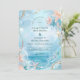 A soft, luminous coastal wedding design inspired by sunlight over calm waters. Delicate watercolor blues blend with floating starfish, gentle florals, and subtle golden accents to create an airy, dreamlike atmosphere.
