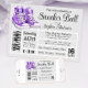 Convite de bola de tênis roxo com tênis roxos em um fundo de etiqueta de sapato cinza. Este convite de bola de tênis roxo é facilmente personalizado para o seu evento, basta adicionar seus detalhes. Você também pode alterar a cor do fundo e a cor do texto.
