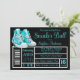 Convite de bola de tênis azul turquesa com tênis azuis turquesa em um fundo de etiqueta de sapato preto e branco. Este convite de bola de tênis azul turquesa é facilmente personalizado para o seu evento, bastando adicionar seus detalhes. Você também pode alterar a cor do fundo e a cor do texto.