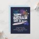 Design de Trendy de Cartão de Convite de Férias. EU AMO A Coleção AUSTRÁLIA. "JOY! AMOR! PEACE!" e "Happy Austrália Day 26 de janeiro". Australian Flag, Austrália Map, Heart, stars & fireworks. Engraçado Austrália, Poster festiva de Natal Patriótico para presentes e design de roupa. Convites e artigos de papelaria > Convites e anúncios. decoração de evento festival. Viagem, Viajando, Bon Voyage, Festa de Praia, Aniversário. Design com modelo de texto. Personalize-os adicionando nome ou texto de desejos. 2025