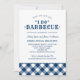 Acenda a grelha e celebre com este convite de festa de engajamento de churrasco "Eu faço". Um padrão alegre de xadrez azul marinho emoldura uma tipografia rústica e ousada para um clima descontraído e divertido que é perfeito para casais que amam uma celebração de casamento ao ar livre casual. Totalmente personalizável com os detalhes do seu churrasco.