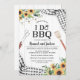 Convide convidados para um chá de casais temáticos de CHURRASCO ou janto de ensaio casual para celebrar o casal feliz! Este convite apresenta girassóis de cor d'água com acentos de gingham preto e branco contra fundo de proteção rústico.