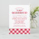 Um chá de casais de casamento festivos e na moda para um evento de CHURRASCO casual no quintal de verão "Eu faço". Xadrez de gingham vermelho com padrão.
