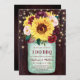 Esses convites apresentam um buquê floral aquarelado em um jarro de alvenaria com girassóis e flores de cor burgundy rosado em um fundo de madeira com luzes de corda. Personalize esses convites com seu próprio texto. Eles fazem parte de uma coleção que inclui itens. Por favor, veja a página da coleção ou visite nossa loja para ver a gama completa.