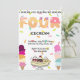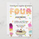 Adoce o grande dia do seu pequeno com este divertido convite de aniversário “Eu Grito, Nós Gritamos, Todos Gritamos por Sorvete”! Com cones de sorvete coloridos, confeitos e letras divertidas, é perfeito para uma celebração fresca e deliciosamente divertida.
