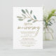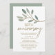 Este cartão de convite de aniversário de 50 anos de casamento com eucalipto com veias douradas é perfeito para uma festa de aniversário elegante. O design simples e delicado apresenta uma camada de brilho dourado falso nos ramos de folhas verde-oliva.
