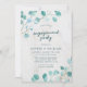 Este convite de festa de noivado apresenta folhas de eucalipto com as palavras "festa de noivado" no roteiro de tendências, todas contra um fundo de mármore pálido na frente e uma cor verde-rosa escura na parte de trás. Personalize-o substituindo o texto do marcador de posição. Para obter mais opções, como alterar a fonte, seu tamanho, espaçamento entre letras e expandir ou contrair texto curvo, clique no botão "Personalizar". *Observe que a Marca d'água do Zazzle que aparece na visualização de zoom NÃO aparecerá no produto impresso final. © Rosewood e Citrus
