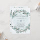 O design apresenta um elemento de folhagem colorida impressa em tons de verde claro e azul poeirento. Texturas de lona com efeito de aquarela azul-verde com caligrafia ou texto datilografado. Ótimo para as celebrações do seu casamento!