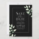 Convite Eucalipto Folhagem Botânico Verde Salve a Data. Personalize todos os campos de texto para criar o convite perfeito para o seu dia especial.
