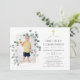 A cor d'água da Tendy Eucalyptus prata dólar 1º convite de comunhão com estrutura geométrica dourada. É recomendada uma foto em forma de retrato.