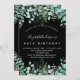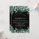 Um convite de tendência para um tema de 40ª (ou qualquer idade) festa de aniversário, encantado da floresta. Um fundo preto com samambaias e eucalipto verde. O nome é escrito com um moderno estilo escrito à mão. Personalize e adicione os detalhes da sua festa.
