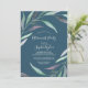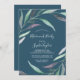 Este convite de festas azul de eucalipto roxo e verde é perfeito para um evento moderno ao ar livre. O simples e elegante design botânico apresenta um verde-aquarela com acentos de lavanda e roxo escuro sobre fundo azul marinho.