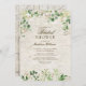 Crie o chá de panela perfeito com este design com aquarela eucalipto e verde botânico ferno e luzes de cordas, sobre um fundo de madeira de passarinho falso. Copyright Elegant Invites, todos os direitos reservados.
