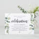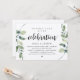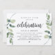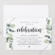 Convite de casamento com tema de greenery eucalipto rústico moderno, com grafia preta e papel kraft (com título: Celebração Feliz para Sempre). É perfeito para o seu casamento às escapadinhas, recepção ou festa de celebração pós-casamento. Adicione seus detalhes em fonte preta correspondente.