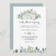 Este convite de aniversário de casamento de 50 anos com eucalipto verdejante é perfeito para uma celebração de aniversário de destino. O design apresenta rosas deslumbrantes roxas, brancas, azuis e rosadas ilustradas aninhadas em um lindo buquê de folhas verdes de eucalipto.
