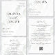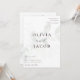 Faça a sensação romântica para o dia do seu casamento com esta design moderna com folhas de cor aquática eucalipto. Você pode adicionar mais informações sobre o seu casamento no fundo do convite.