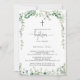 Esse convite de batismo de eucalipto minimalista geométrico é perfeito para um batismo ou batizante moderno para bebês. O design apresenta galhos e folhas botânicas elegantes e desenhadas a aquarela, desenhadas à mão, adornando quadros geométricos.