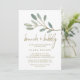 Esse cartão de convite para eucalipto e bubel veinado de ouro é perfeito para um chá de panela elegante. A design simples e delicada apresenta uma falso brilho dourado que ensola os ramos das folhas verdes de azeitona. Nota: Este design não apresenta brilho de ouro real. É um gráfico de alta qualidade feito para se parecer com um martelo de ouro.