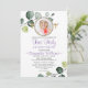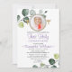 Convite elegante moderno para a primeira comemoração da sua filha. O convite é tão bonito com um verde com folhas botânicas design com fundo de aquarela. Além disso, fizemos o convite com personalização extra com a foto da sua filha para fazer com que pareça mais singular e especial. Basta tirar uma foto com o telefone e adicioná-la à estrutura moderna do miçanga.