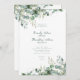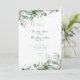Este convite de casamento de eucalipto com aquarelas é mínimo e elegante. Emerald Green e Sage estão em tendências para Primavera, Verão e outono. O script simples é clássico. A parte de trás do convite apresenta a sua fotografia (que tem um filtro) juntamente com uma mensagem e um Código QR