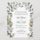 An elegant and classic archway wedding invitation featuring a greenery lined archway with eucalyptus, ferns and white flowers, with text in classic wedding script and a minimalist non serif font for the details. This invite is available in acrylic clear and frosted finishes.