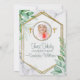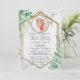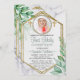 Convite elegante moderno para a primeira comemoração da sua filha. O convite é tão bonito com um verde com folhas botânicas design com fundo de aquarela. Também fizemos o convite com personalização extra com a foto da sua filha para fazer com que pareça mais singular e especial. Basta tirar uma foto com o telefone e adicioná-la à estrutura moderna do miçanga.