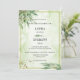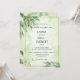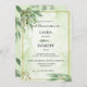 Seu romance é verde. Este vibrante convite para o casamento apresenta uma falso estrutura metálica com folhas de eucalipto pintadas nos cantos sobre um fundo de aquarela. Dentro do quadro, seus nomes e detalhes do casamento são exibidos em fontes elegantes. Nas costas, a folhagem de eucalipto preenche o espaço verde-claro, criando um sentimento de calma e continuidade. Algumas imagens também são removíveis. Personalize com seus próprios detalhes.