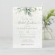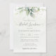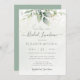 Belo convite para o almoço de noiva com aquarela eucalipto e folhas de ouro.