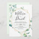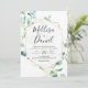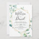 O Convite Trendy Wedding, que inclui as folhas de cor aquosa verde pintada à mão, eucalipto, adornadas por uma estrutura geométrica de ouro branco moderna, foi emparelhado com uma escrita caprichosa e uma fonte sans serif limpa. Personalize-o conforme necessário e torne-o seu!
