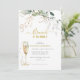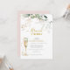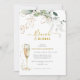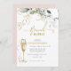 Beleza e diversão com este convite de almoço de champanhe de brunch e Chá de panela borbulhante desenhado com galhos de uísque e eucalipto macio dourados, e um pano de fundo rosa e pincelado na parte de trás da carta. Personalize facilmente com o nome da noiva e outras informações importantes.