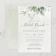 Bonito convite para brunch bridal com aquarela eucalipto e folhas de ouro.