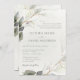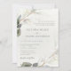 Belo convite para o casamento, com aquarela eucalipto e folhas de ouro.