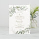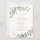 First Communion invitation featuring a frame of watercolor eucalyptus and greenery. Customize with your information. Click "click to customize further" to change the font style, size or color.