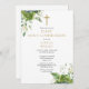 Este elegante eucalipto verde botânico de primeira comunhão sagrada pode ser personalizado com suas informações em tipografia chica com iniciais de monograma no verso. Projetado por Thisnotme©