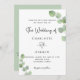 Um fundo branco decorado com cinzas de eucalipto verde. Personalize e seu nome e detalhes da cerimônia. Letras pretas coloridas. Fundo verde. Adicione sua própria url ao seu site de casamento para RSVP on-line ou para obter mais detalhes.