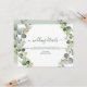 Eucalyptus Greenery Succulent Botanical Watercolor, Spring Wedding Details Card em fundo branco - inclui uma bela e elegante tipografia com folhas botânicas modernas e verde para a celebração especial do Dia do Casamento.