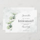 Proposta da Watercolor Bridesmaid Eucalyptus Script com um moderno design botânico minimalista sobre um fundo branco com a tipografia popular, você pode facilmente editar a DICA: Veja abaixo outros itens de eventos de preparação de casamento e pré-casamento, incluindo convites de chá de panela, cartas de agradecimento, etiquetas de champanhe, etc. para este design!