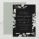 Convites de casamento Elegantes de eucalipto com seus detalhes enquadrados por uma fronteira de eucalipto e folhagem em tons de verde claro e escuro com fundo preto. Os convites de casamento de eucalipto com aquarela invertem para exibir um plano de fundo verde de sábio sólido.