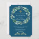 Lush Eucalyptus Greenery Wreath Dourado Cruzamento Batismo. Esta design apresenta uma cruz de ouro falsa, uma coroa verde Eucalyptus, coroa foliar, sobre fundo azul-oceano, e fontes modernas. Use a ferramenta personalizar para adicionar suas informações. Para ver os itens correspondentes, visite a minha nova coleção de celebrações batismo de natação.
