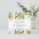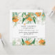 Trabalho de arte de aquarela de laranjas doces, flores, frutas para bebês, citrinos e folhas de eucalipto para "Um Pequeno Bebê Cutie, Rapariga ou Chá Neutro para Gênero ou Convite para borrifar. O verso tem texto tipográfico, "um pouco de beleza está a caminho", e outra cor de laranja, folhagem das folhas e o nome do seu futuro bebê, se o escolheu ou simplesmente apague o texto, se não o escolheu. Todo o texto do convite frontal pode ser alterado usando os campos modelo. Trabalho de arte por uma artista e designer internacionalmente licenciada, Audrey Jeanne Roberts, copyright.