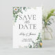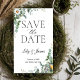 Coloque a palco para o seu casamento ou chá de panela com esses cartões salve a data de eucalipto e flor silvestre. Uma delicada fronteira de verde e florais envolve uma combinação de texto clássico e moderno para um olhar eterno e memorável ao mesmo tempo.