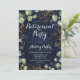 Convite de festas de aposentadoria botânica elegante. Design de clássico no marinho; recursos, cor d'água pintada manualmente, verde-verde eucalipto e fonte de script. Personalize com seus próprios detalhes. Envie-me uma mensagem se precisar de mais personalização.