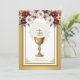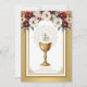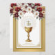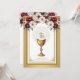 Celebrar o Sacramento da Primeira Comunhão é uma ocasião maravilhosa. Este tradicional vintage, feito por hábitos católicos, floral da Primeira Comunhão, Convite com flores burgundy e brancas, um Chalice dourado e o Santo Eucarista expressam certamente a beleza e solenidade deste dia especial. Todo texto e fontes podem ser modificados facilmente.