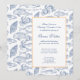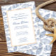 Elegante design azul e branco de peixes, conchas e caranguejos para um evento à beira-mar - casamentos, aniversários, inauguração de um novo resort ou negócio à beira-mar.