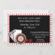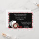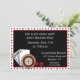 Um convite perfeito para festas de despedida de solteiro ou eventos de cassino. O design apresenta cartas de baralho, roleta e dados vermelhos com borda de naipe de cartas em vermelho, preto e branco.