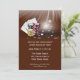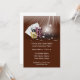 Um convite perfeito para festas de despedida de solteiro ou eventos de cassino. O design apresenta pilhas de fichas e cartas de baralho mostrando 4 ases em fundo marrom com estrelas brancas brilhantes.