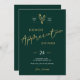 Crie convites corporativos personalizados com este luxuoso design de Convite para Drinks de Apreciação de Negócios, verde e ouro. Este elegante e falso efeito ouro e convite para comemoração da empresa de fundo verde esmeralda apresenta um layout moderno com uma fonte e espaço finos para o seu logotipo e detalhes do evento. Você pode usar este convite corporativo para bebidas de apreciação de doadores, dia de apreciação de clientes ou qualquer outro evento de apreciação.