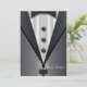 Convite elegante e sofisticado para evento formal ou festa com camisa preta e gravata borboleta preta. Personalize e customize as laterais frente e verso com as informações do seu evento no estilo de fonte, palavras e layout de sua escolha.