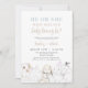Este convite de revelação apresenta belos pacotes de aquarela e uma fonte divertida de script com uma combinação de cor doce e cor bege. Este convite para coelhos é perfeito para a sua doce celebração de bebês.